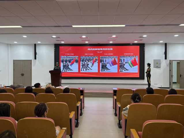 国旗护卫队成员身着礼服,英姿飒爽,围绕九三阅兵、征兵入伍政策,详细讲解国家安全形势、国防政策法规及新时代老员工的国防责任等方面内容,号召同学们从认识一面国旗的意义开始,读懂国家尊严的重量,把个人理想融入强国强军伟大实践。要铸牢思想根基,做国防知识的主动学习者;要强化实践锻炼,做国防科技的积极践行者;要肩负时代使命,做国防建设的自觉参与者。(审核:汪斌)