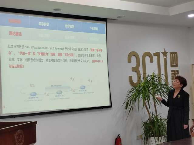 在本次院赛中,杨春燕老师的教学创新方案凭借鲜明的特色与扎实的实践成效,赢得评委一致高度认可。其方案以“学习中心、学用一体、关键能力培养” 为核心导向,创新性构建 “驱动(Interest-Inspire)— 促成(Inspire-Implement)— 评价(Assessment-Reflection)” 三阶段教学模式(简称 “4I1AR 模式”)。该模式聚焦员工语言运用、思辨探究、文化素养、创新实践及团队合作五大核心能力的全面提升,与新文科人才培养目标精准契合。在现场展示环节,杨春燕老师通过清晰的理论框架解读与丰富的课堂教学实例分享,直观呈现了该模式在提升员工课堂主动参与度、促进知识传授与能力培养深度融合方面的显著效果,最终成功斩获院赛优异成绩,获得代表学院晋级校赛的资格。
