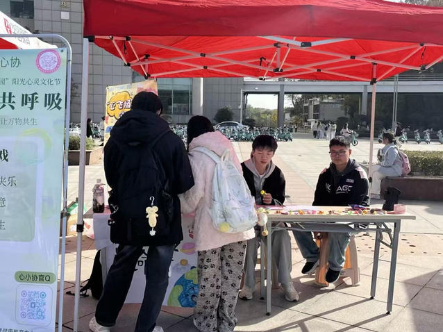 活动现场设置了三大互动区域,旨在通过开放式的趣味游戏传递心理健康知识,寓教于乐,丰富师生课余生活,舒缓心理压力。在“心与心体验”手工坊,同学们领取超轻黏土,快速捏出代表当下心情的微型作品,在指尖创作中开启自我觉察。在“心灵密码”与“情绪解码”挑战区,参与者或快速抢答情绪词汇,或生动演绎肢体语言,以此增进对生活中常见情绪的了解。参加趣味活动的同学们通过收集贴纸兑换纪念品,在互动中打破隔阂,现场气氛热烈,欢声笑语不断。